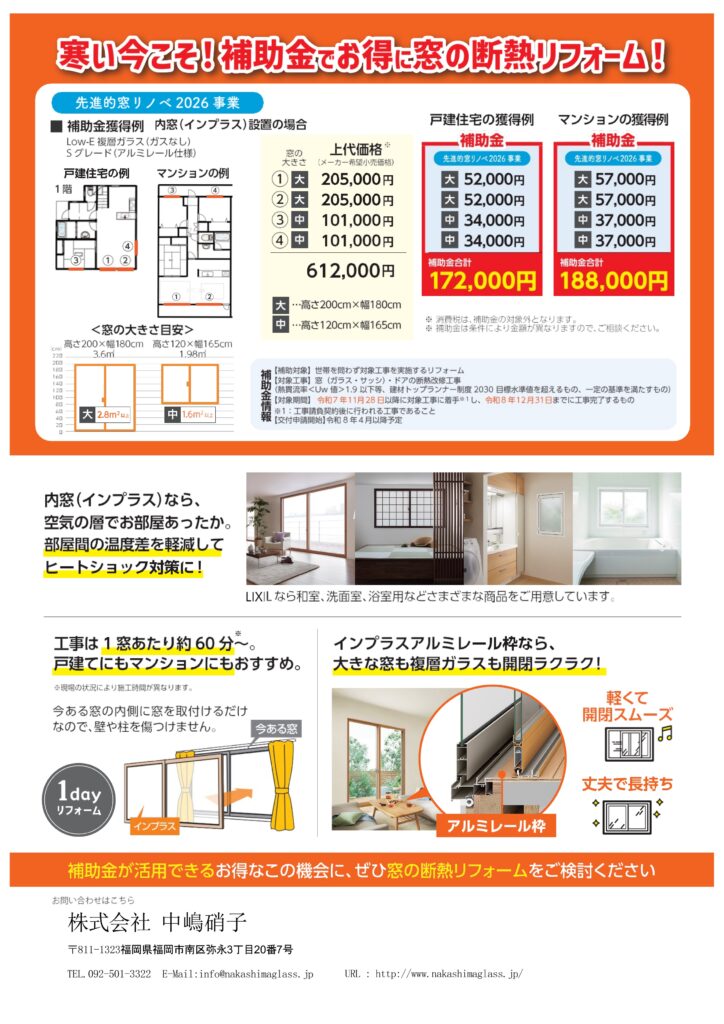 寒い今こそ!補助金でお得に窓の断熱リフォーム!